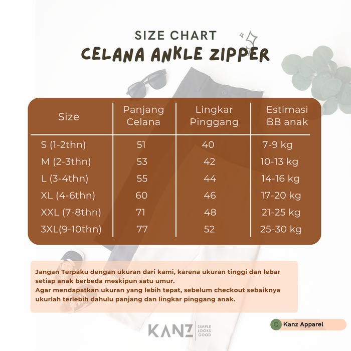 ANKLE PANTS ZIPPER ANAK | CELANA ANKLE ANAK / BAYI USIA 1 - 8 TAHUN | LAKI LAKI DAN PEREMPUAN - CREAM, S