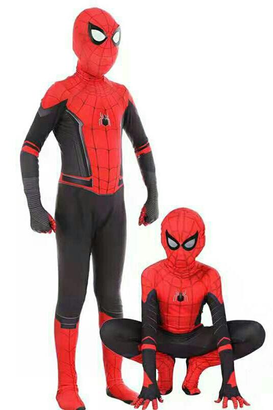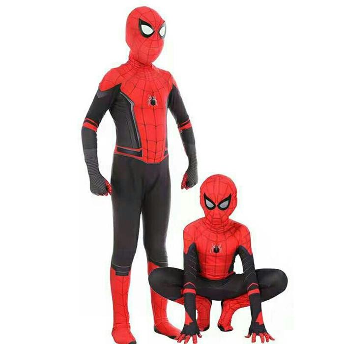 KOSTUM SPIDERMAN 01 MERAH HITAM BAJU COSPLAY SUPERHERO ANAK + TOPENG - M