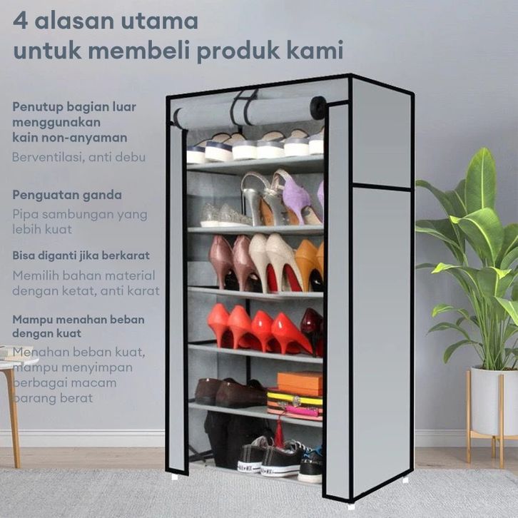 Rak Sepatu Serbaguna Tertutup Anti Debu Rak Gantungan Baju Rak Sepatu/Sendal Besi Susun Model Sekarang Best Seller Murah
