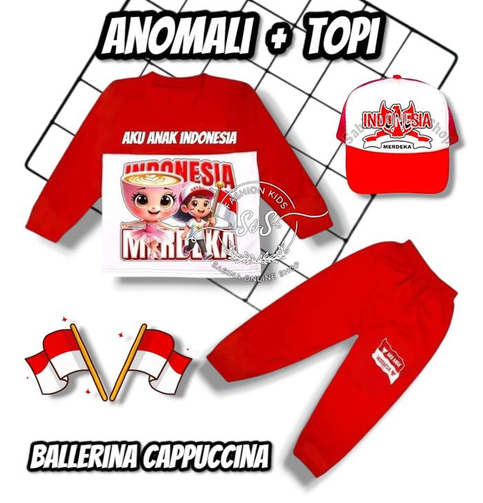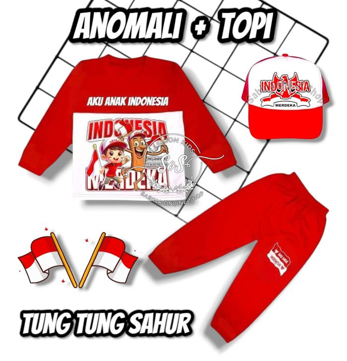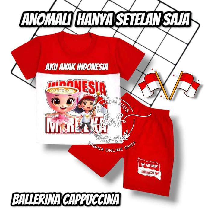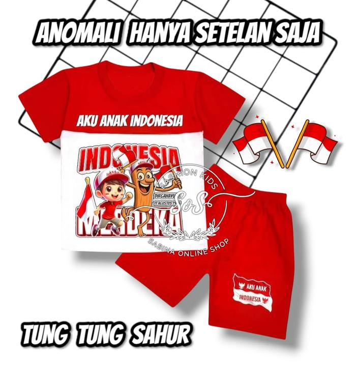 SETELAN BAJU ANAK KERMERDEKAAN MERAH PUTIH 17 AGUSTUSAN ANOMALI TUNG TUNG SAHUR DAN BALLERINA CAPPUCCINA UNTUK USIA 1-10 THN COCOK UNTUK ACARA LOMBA ANAK PARSEL - HANYA SET - TUNG TUNG MP, 1 THN