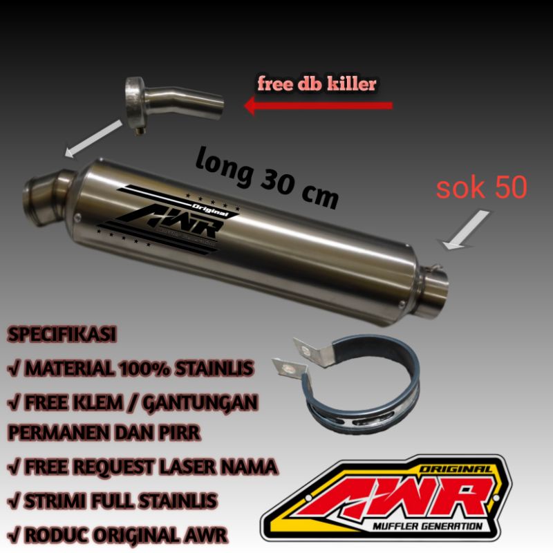 slincer knalpot ring original AWR shock 50 long 30 & 40 cm full bass