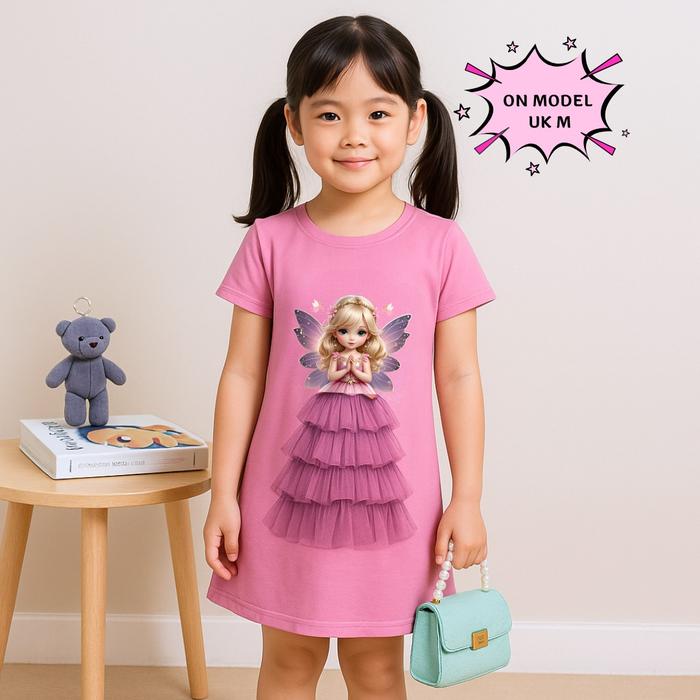 BAJU ANAK PEREMPUAN - DRESS ANAK WILDA MOTIF PRINCESS KOMBI TILLE TERLARIS / FASHION DRESS CASUAL ANAK PEREMPUAN MOTIF KARAKTER PRINCESS TERBARU - WILDA TINKERBEL, S