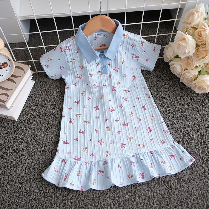 OWLET - DASTER ANAK MOTIF PITA / DRESS ANAK PEREMPUAN / DRESS ANAK LUCU / DRESS ANAK CUTE 1-7THN LENGAN PENDEK CEWEK - DRESS SIERRA PUTIH, S