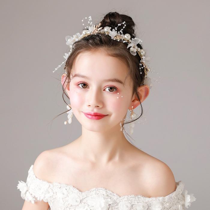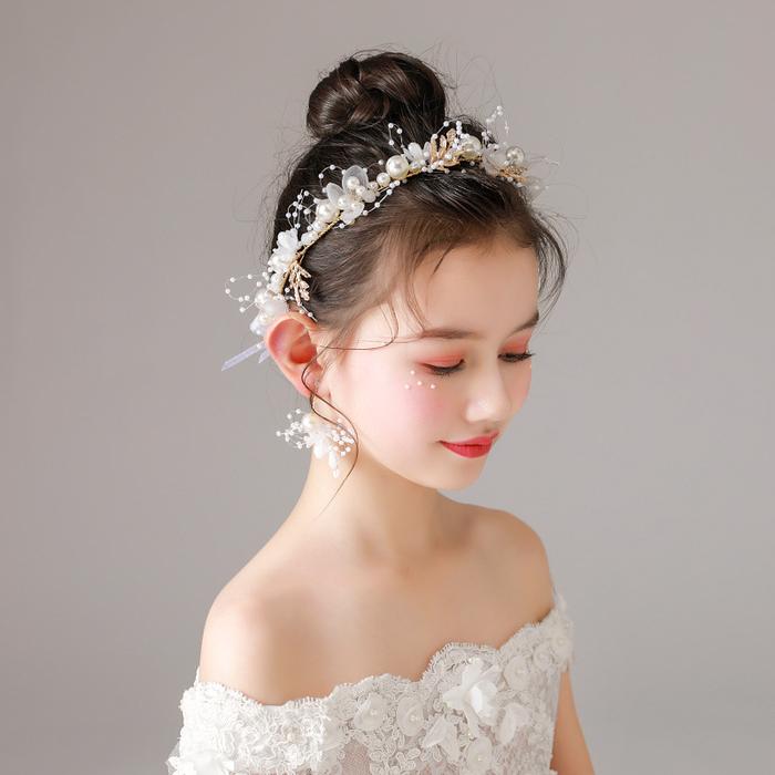 DADAWARD HEADPIECE BUNGA MUTIARA PRINCESS PUTIH MAHKOTA MUTIARA AKSESORIS RAMBUT HIASAN WANITA ANAK BERLIAN KRISTAL DEWASA FASHION CANTIK JEPIT BUNGA JEDAI BUNGA KAMBOJA BAYI MANIK - PUTIH