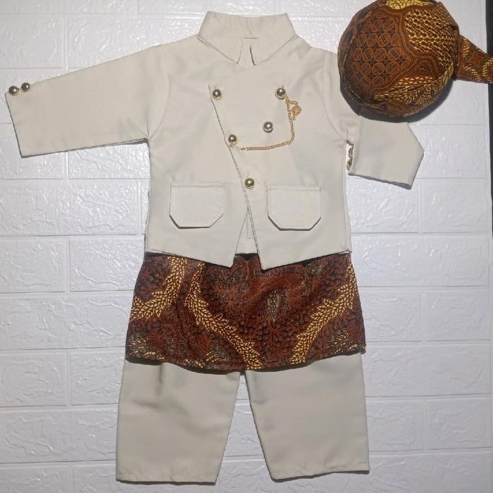 CODREALPICT // FREE BLANGKON // SETELAN BESKAP MELAYU ANAK DAN BAYI COWOK UMUR 0BLN -10THN // BESKAP ANAK // BESKAP BAYI//SET BAJU DALANG ANAK DAN BAYI MURAH LUCU// - CREAM, 0-6 BLN