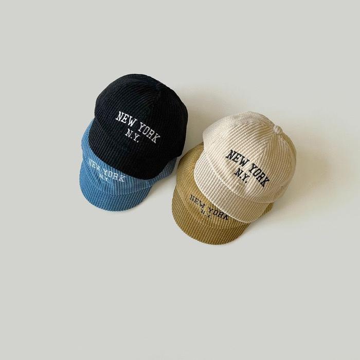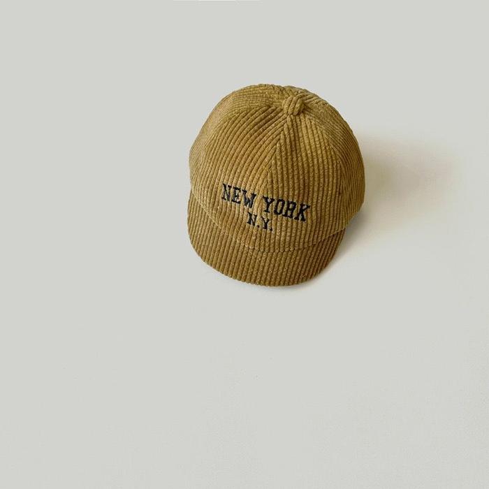 BROWNIEGROUND 6 BULAN - 2 TAHUN | TOPI BAYI BASEBALL ANAK COWOK DAN PEREMPUAN CEWEK MOTIF NEW YORK ALA KOREA BAHAN KORDUROI IMPORT - CREAM