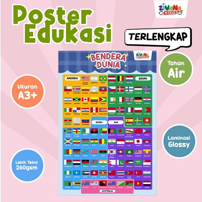 ZIVANA KIDS - POSTER EDUKASI ANAK BENDERA DUNIA