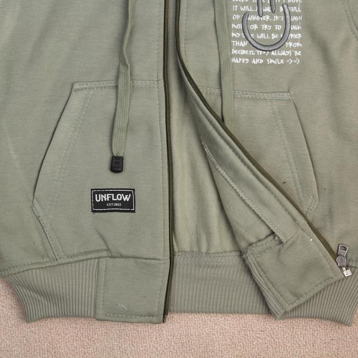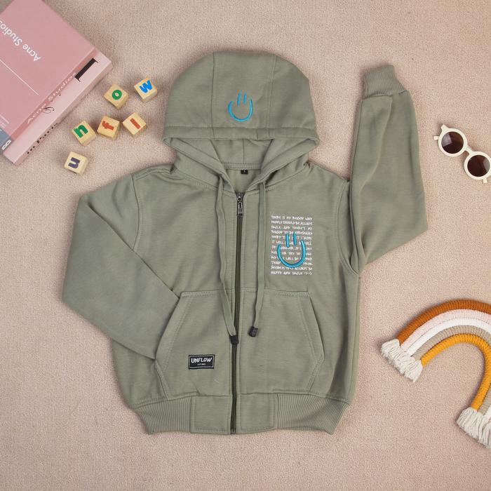 UNFLOW HOODIE KIDS ZIPPER BASIC FASHION ANAK LAKI LAKI DAN PEREMPUAN BORDIR SIMPLE PREMIUM MOTIF HAPPY AND SMILE BAHAN FLEECE TEBAL POLYESTER 280 GM - OLIV, S