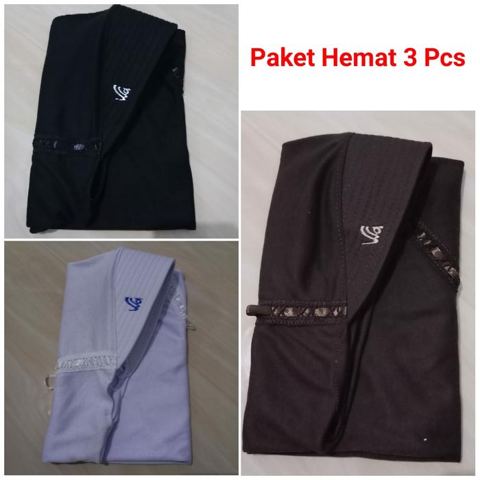 PAKET HEMAT 3 PCS HIJAB INSTAN ANAK SEKOLAH TK SD SMP SMA KERUDUNG PITA RENDA NYAMAN MUSLIM SERUT HITAM UKURAN M 9-10 TAHUN - PAKET 3-ABU HITAM & PUTIH, S