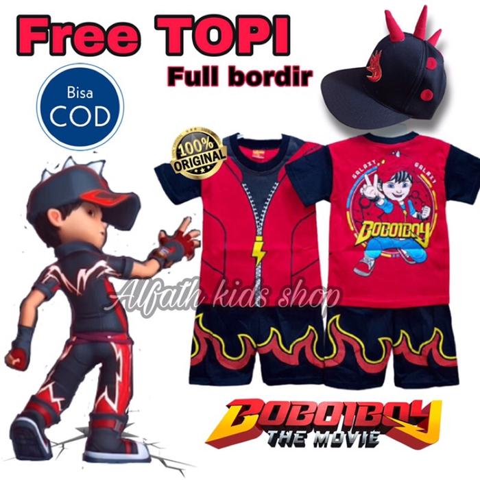 STELAN BAJU KOSTUM BOBOIBOY ANAK GRATIS TOPI /BOBOIBOY HALILINTAR ANAK - BOBOIBOY + TOPI, 2-3 TAHUN
