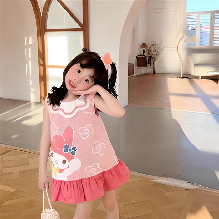 [PRINCESS KESLI] 1-9 TAHUN DRESS KAOS ANAK PEREMPUAN HELLOMELODY RENDA ROMPI ROK BAHAN KATUN LEMBUT NYAMAN GAUN BAYI - MERAH MUDA, 120