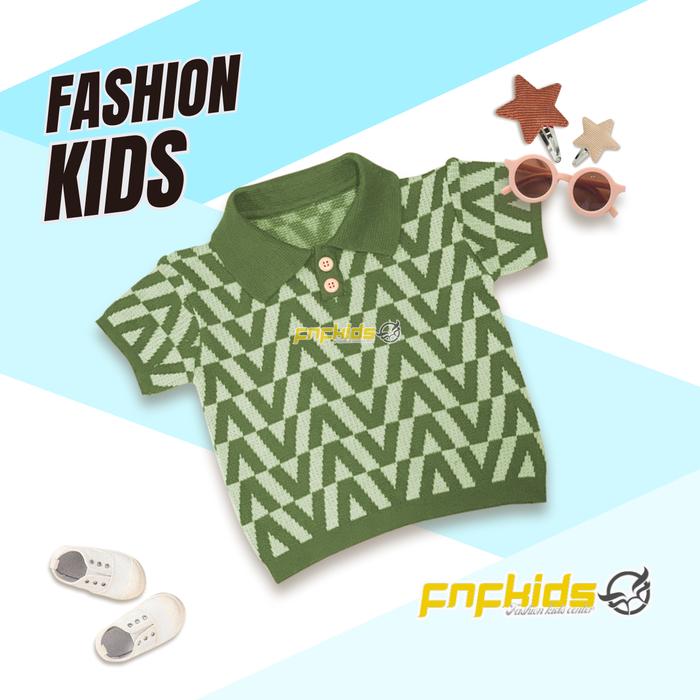 POLO V - ATASAN BAJU RAJUT ANAK UNISEX MOTIF V LENGAN PENDEK UNTUK USIA 1-7 TAHUN KATUN KOREA FASHION - RANDOM WARNA, S