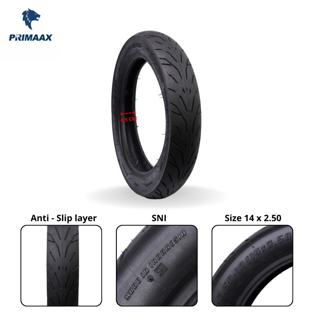 BAN LUAR TUBELESS SEPEDA LISTRIK PRIMAAX PRO 14 X 2.50 / 10-2.50 / 60/90-10 KHUSUS E-BIKE DAN MOTOR LISTRIK