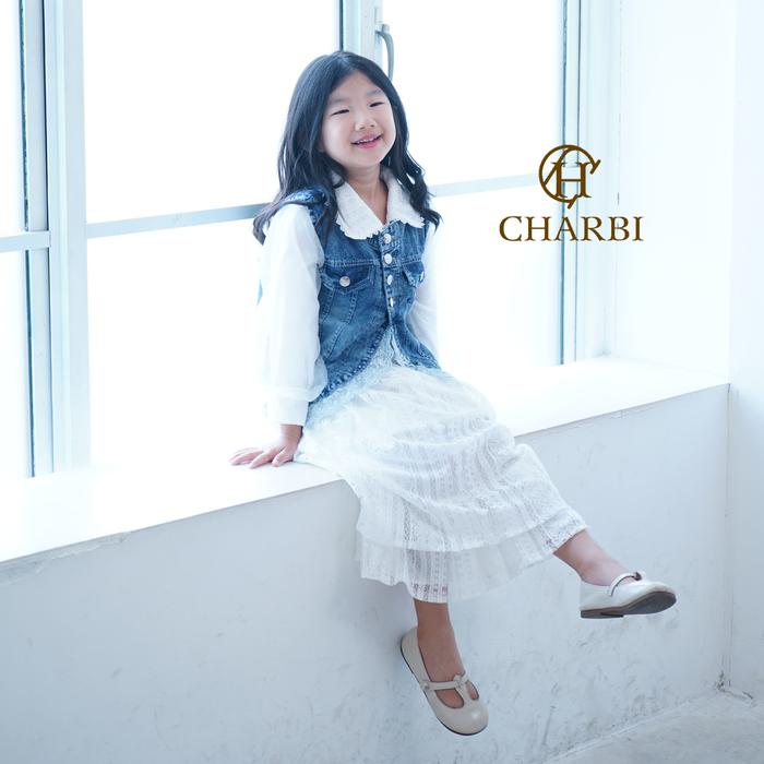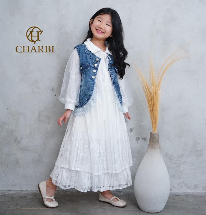 RACHEL DRESS - 2 IN 1 JEANS VEST WITH 2 LAYERED MALIKA LACE ANAK ANAK - CHARBI - 2-3 TAHUN