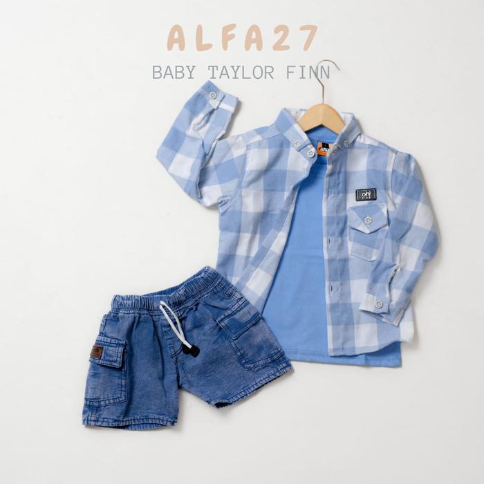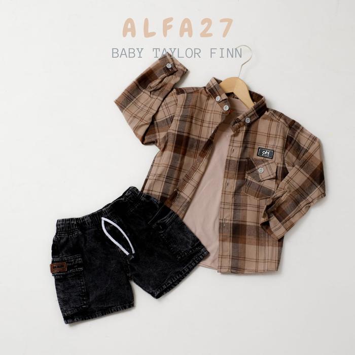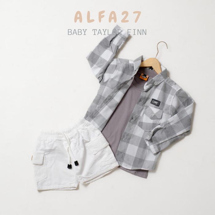 ALFA27 - [ 3 IN 1 ] SETELAN KEMEJA FLANEL ANAK USIA 1-6 TAHUN LAKI-LAKI PEREMPUAN LENGAN PANJANG - SET GREY + WHITE, M