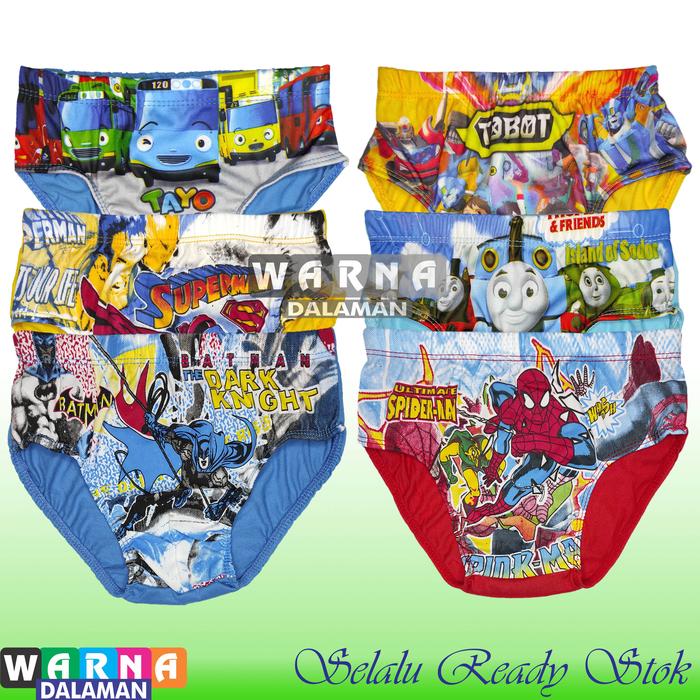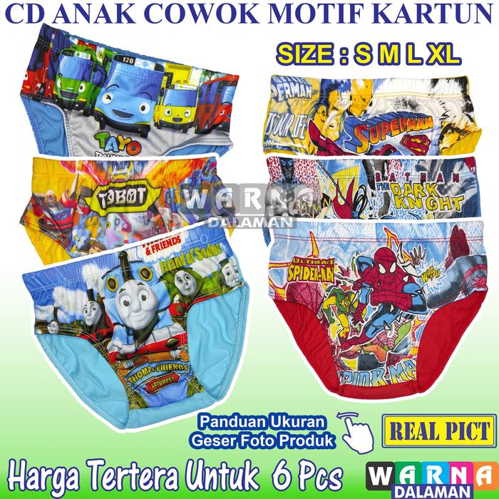 6 PCS CELANA DALAM ANAK LAKI LAKI USIA 1-9 TAHUN MOTIF GAMBAR WARNA DALAMAN - S, ISI 6 PCS