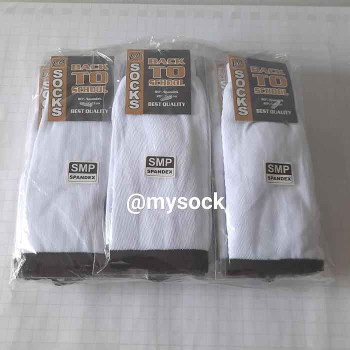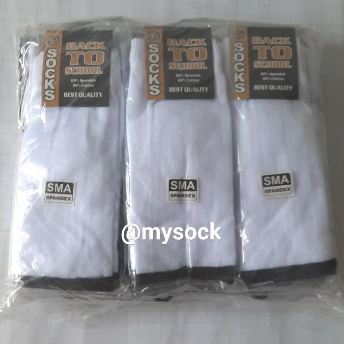1 LUSIN KAOS KAKI SEKOLAH SD SMP SMA PUTIH TAPAK HITAM - SMP