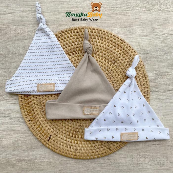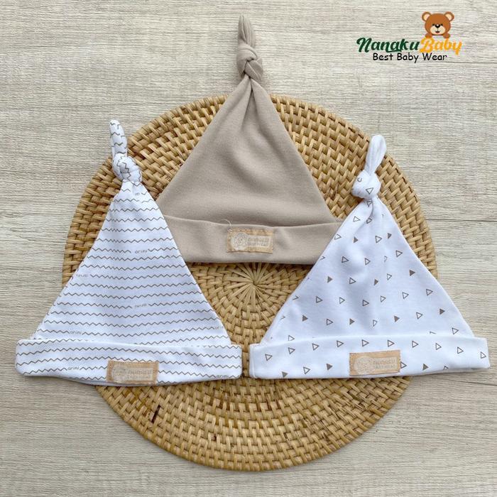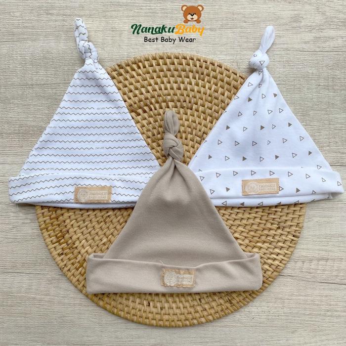 NANAKU BABY - SERI CREAM 3 PCS TOPI BAYI KUPLUK BAYI BARU LAHIR MOTIF LUCU KUALITAS PREMIUM - 3 PCS KUPLUK SERI CREAM