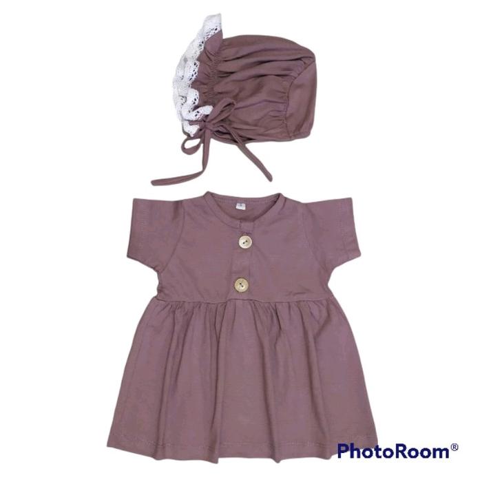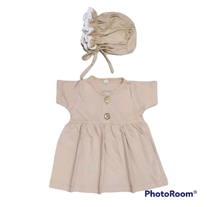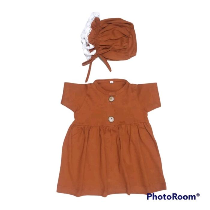 DRESS BAYI KATUN KIM BONUS TOPI BONNET PREMIUM 0-12 BULAN - ORANYE BATA, S