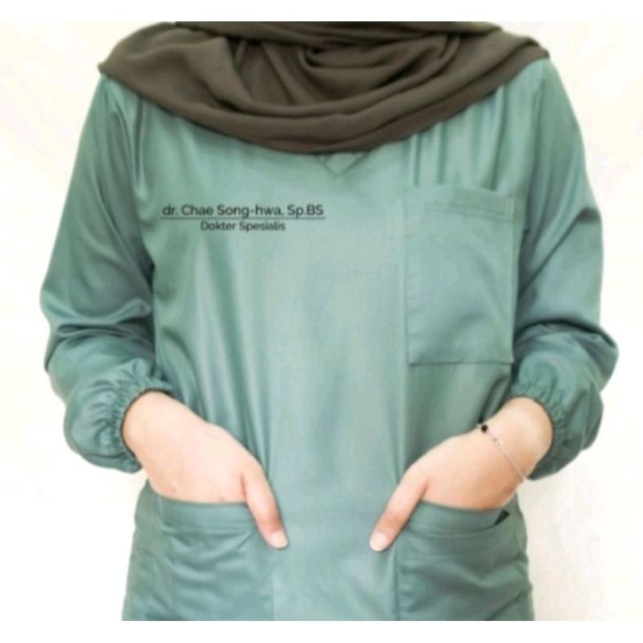 TERBARU [FREE BORDIR NAMA] Baju OK OKA dokter jaga perawat petugas medis lengan PANJANG KARET ukuran S M L XL