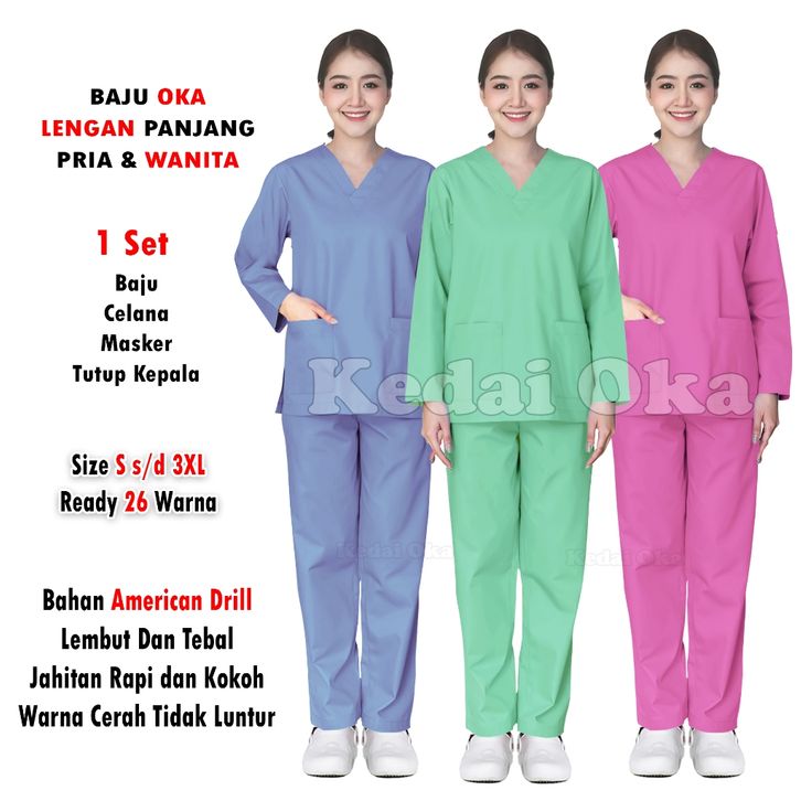 PROMO Baju Oka Jumbo - Baju Oka Lengan Panjang - Baju OK Perawat - Seragam Jaga Dokter Perawat Bidan - Bahan