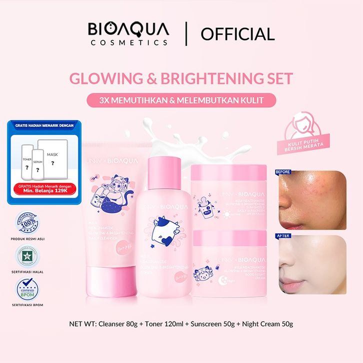 BPOM Bioaqua Cosmetics Milk Niacinamide Glowing & Brightening set whitening brightening moisturizer hydrating toner/C