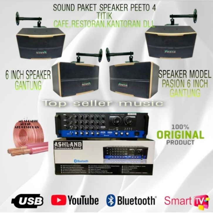PAKET SOUND SPEAKER PEETO 6 INCH 4 TITIK AMPLI MIXER ,CAFE,RESTORAN,SEKOLAHAN DLL