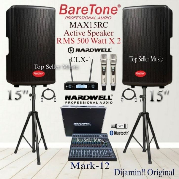 Paket Sound System Speaker BARETONE MAX15RC 15 Inch Mixer Hardwell Mark-12 Mic 2 CLX1