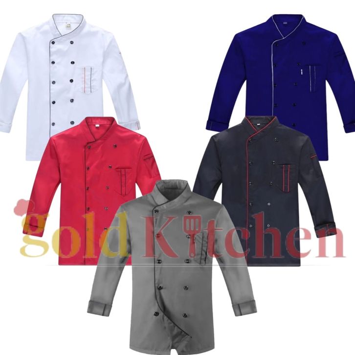 NEW Baju Koki Chef Jacket Baju Chef Lengan Panjang Pria Wanita Bahan Drill afomns