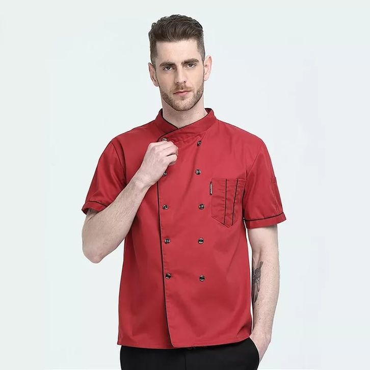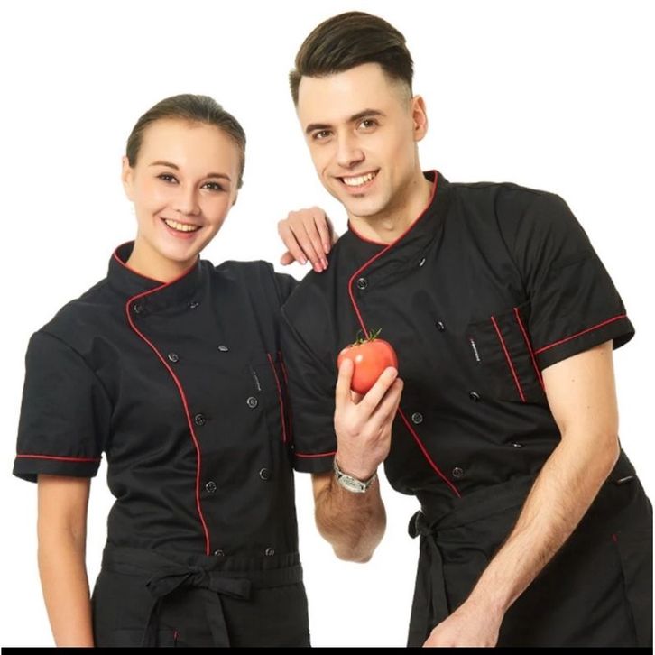 TERMURAH Kemeja Kerja Baju Koki Chef Jacket Lengan Pendek Pria Wanita Bahan American Drill uhedf