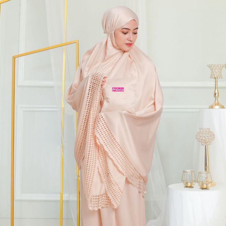 TERBARU Nelula - Mukena Traveling 2in1 Lasercut Dewasa Bahan Sutra Velvet Silk Premium Polos ubegk