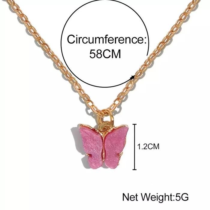 Terlaris Kalung Wanita korea Kupu-kupu / Kalung Rantai Import / Colorful Butterfly Necklace Simple Chain