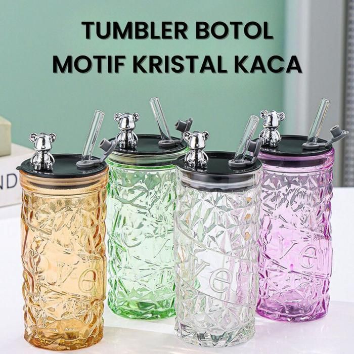 Terlaris Gelas Kaca Borosilicate Sedotan Bear Lid Glass Botol Bear Kaca Aestetic