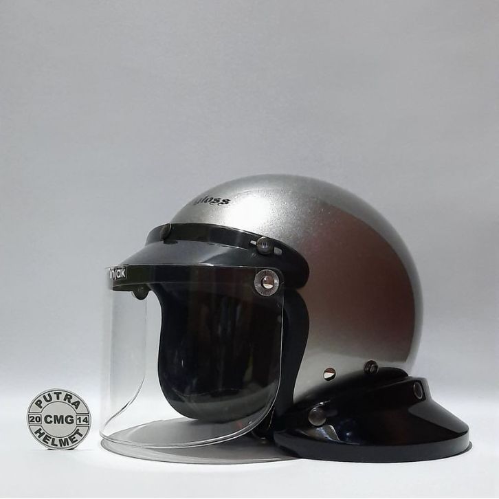PAKET PROMO HELM CARGLOSS ORIGINAL CFM RETRO SILVER MET 8 KACA DATAR FLAT CEMBUNG TERLARIS