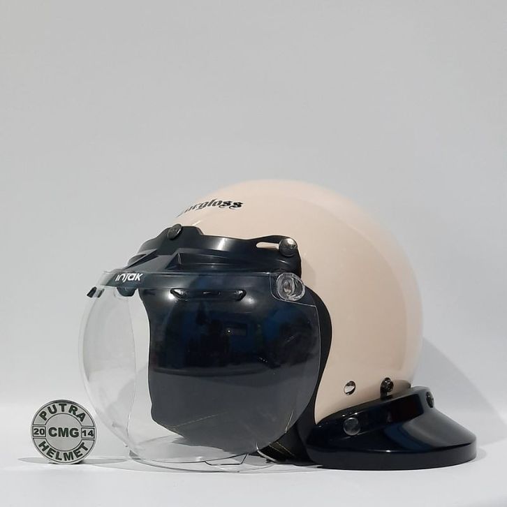 PAKET HELM CARGLOSS CARGLOS ORIGINAL CFM RETRO AVORIO NAIADE CREAM KACA DATAR FLAT CEMBUNG TERLARIS