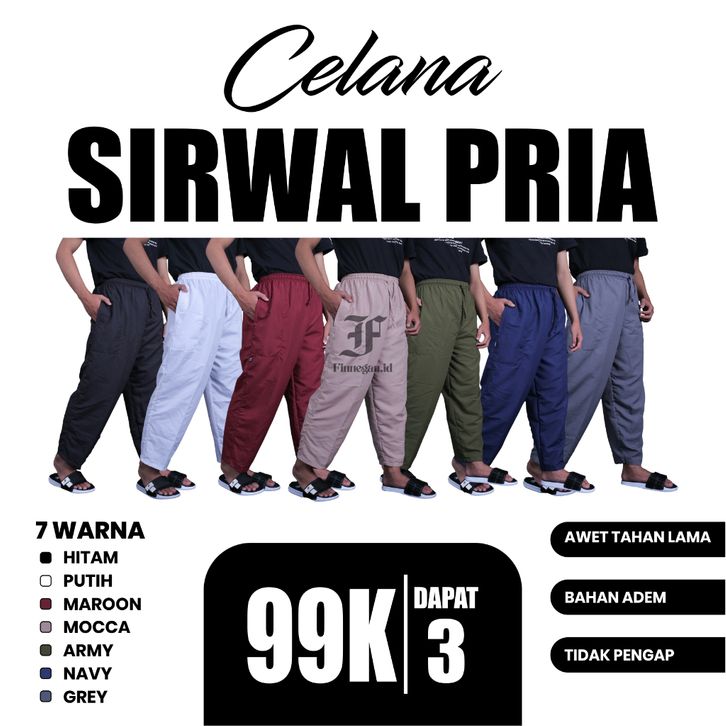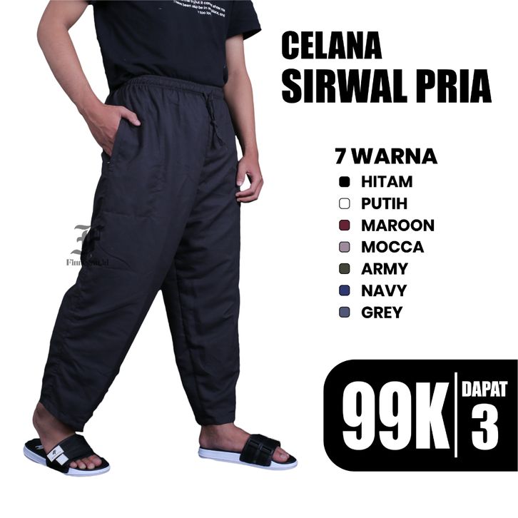 PROMO BELI 3 - CELANA PANJANG SIRWAL KOMPRANG PANGSI MUSLIM PRIA DEWASA SAKU RESLETING KIRI KANAN