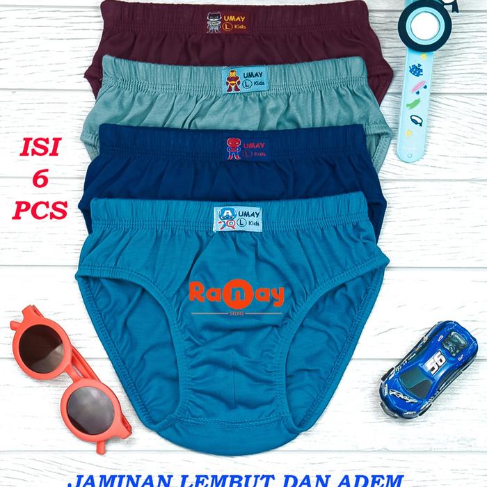 ISI 6 PCS CELANA DALAM ANAK LAKI-LAKI UMAY | 4 WARNA BAHAN KATUN LEMBUT NYAMAN | CD COWOK TERMURAH | KIDS BOY CELANA DALAM ANAK - RANDOM (6PCS), M