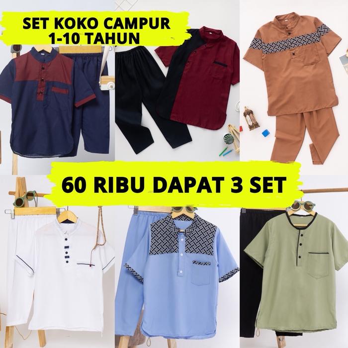 (VIRAL) SETELAN KOKO MUSLIM CAMPUR KURTA ANAK BATIK DADA KANCING LIS GARIS 1-10 TAHUN 60 RIBU DAPAT 3 SET MLXL 81012 - KOKO DBK 3SET, SIZE M
