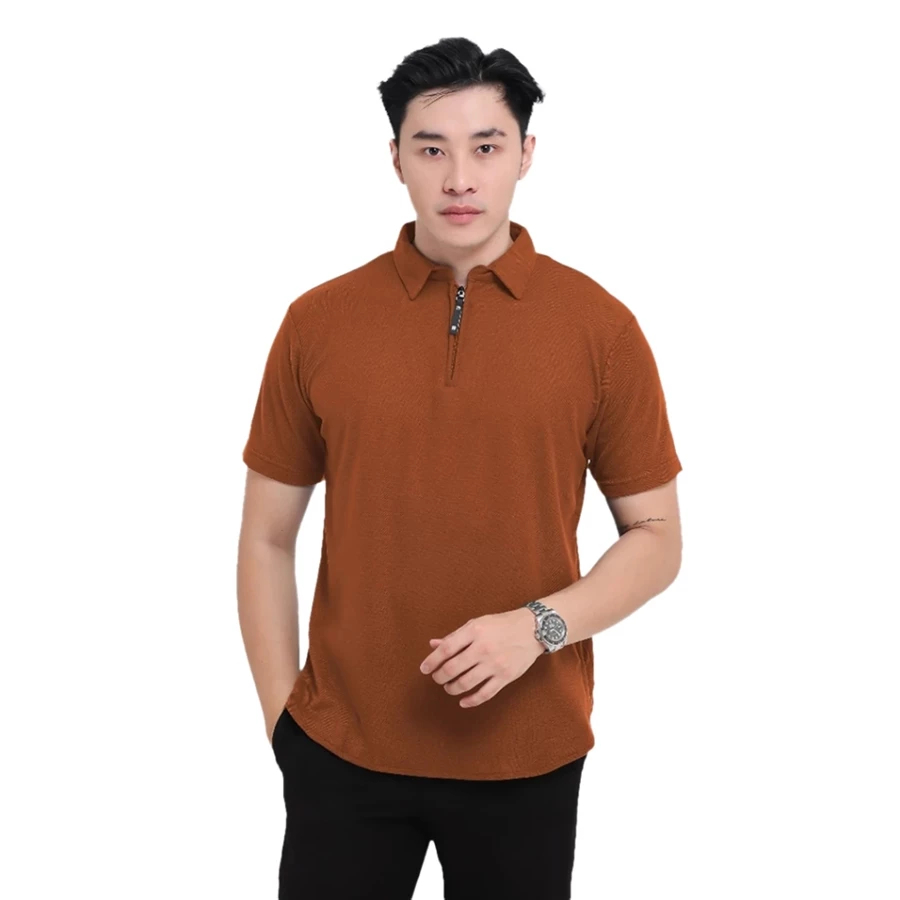 Kaos Polo Shirt Pria Kerah Lengan Pendek Zipper Light Brown