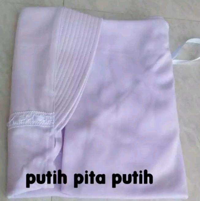 HIJAB SEKOLAH TK,SD,SMP FREE BORDIR NAMA SERUT - PUTIH PITA PUTIH, S =4-7TAHUN(TK)