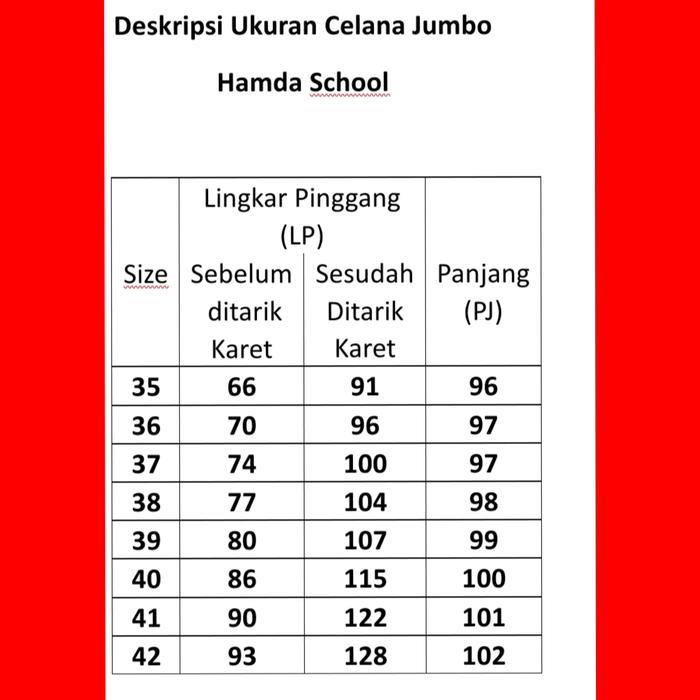 CELANA SEKOLAH PANJANG KARET JUMBO UNTUK SD/SMP/SMA SERAGAM SEKOLAH - MERAH, 35