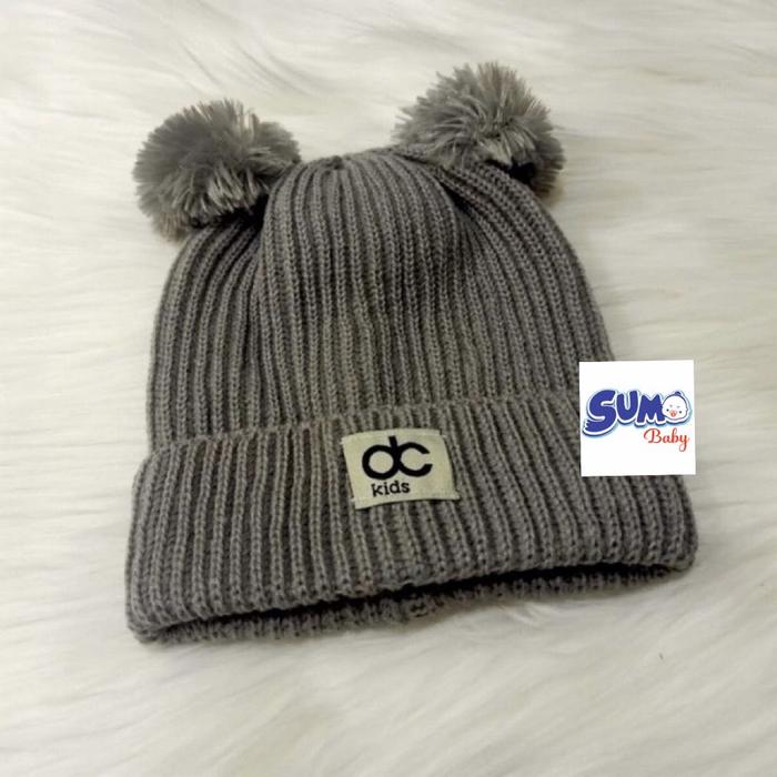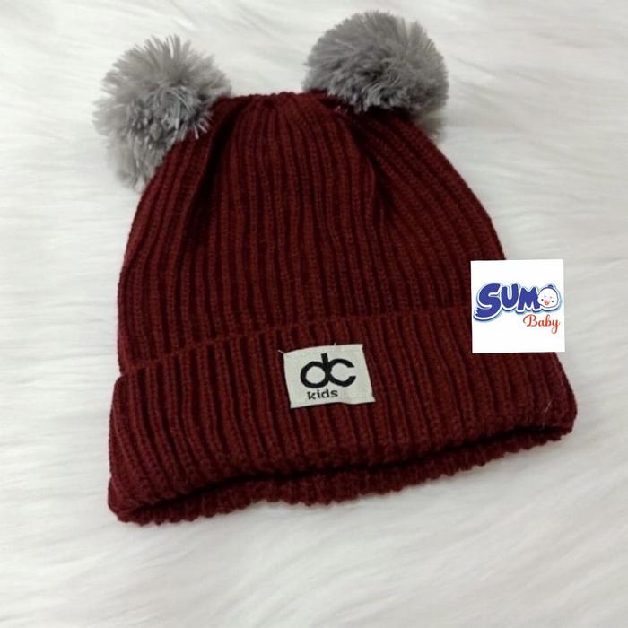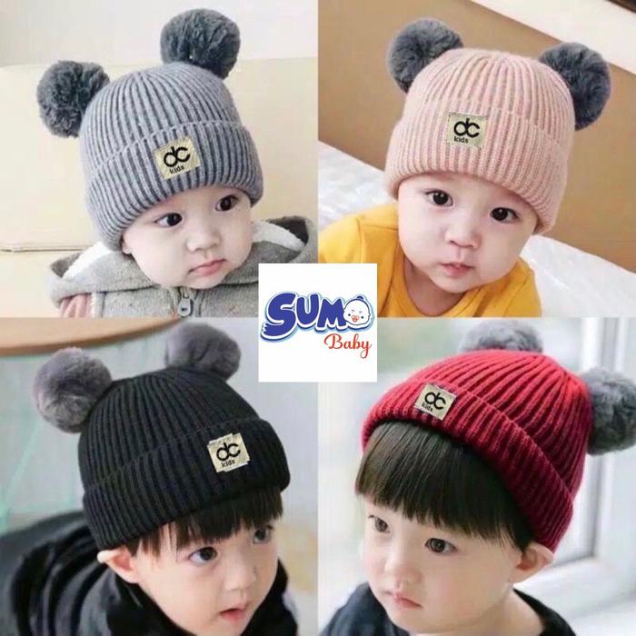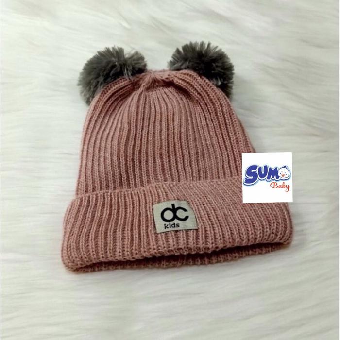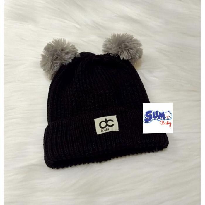TOPI BAYI RAJUT NEWBORN / KUPLUK BAYI RAJUT / TOPI KUPLUK BAYI POM POM - HITAM
