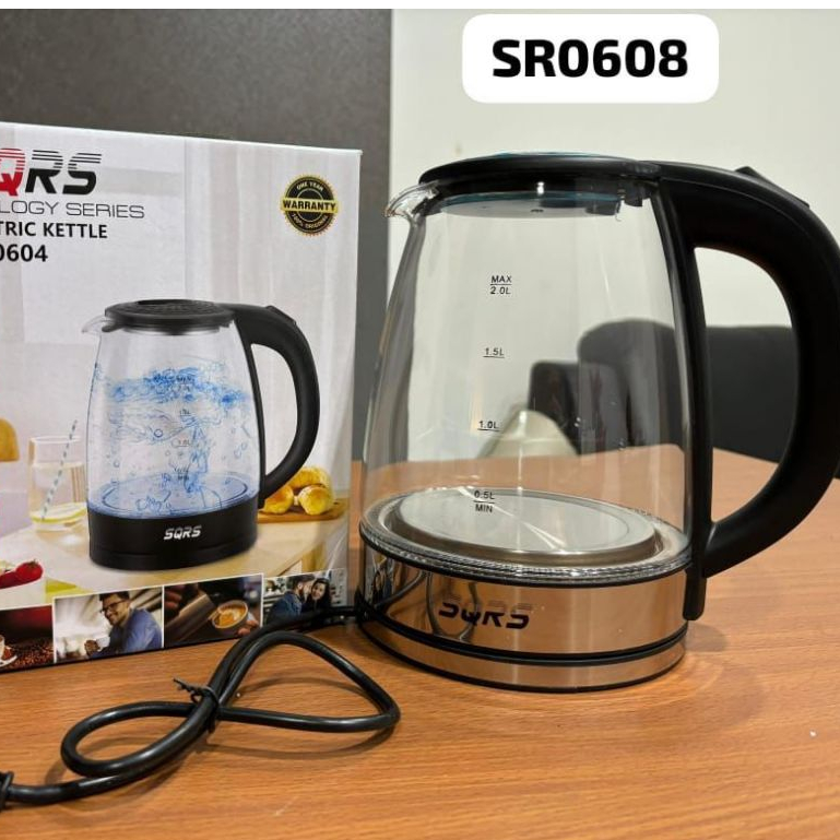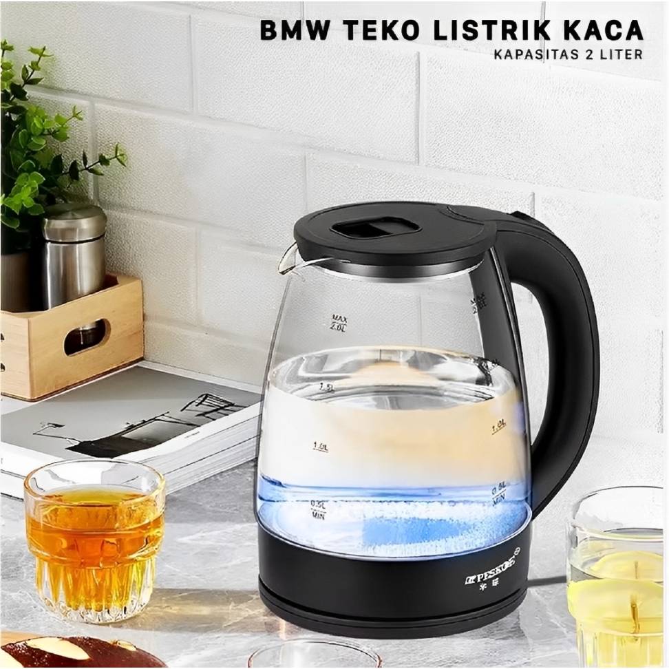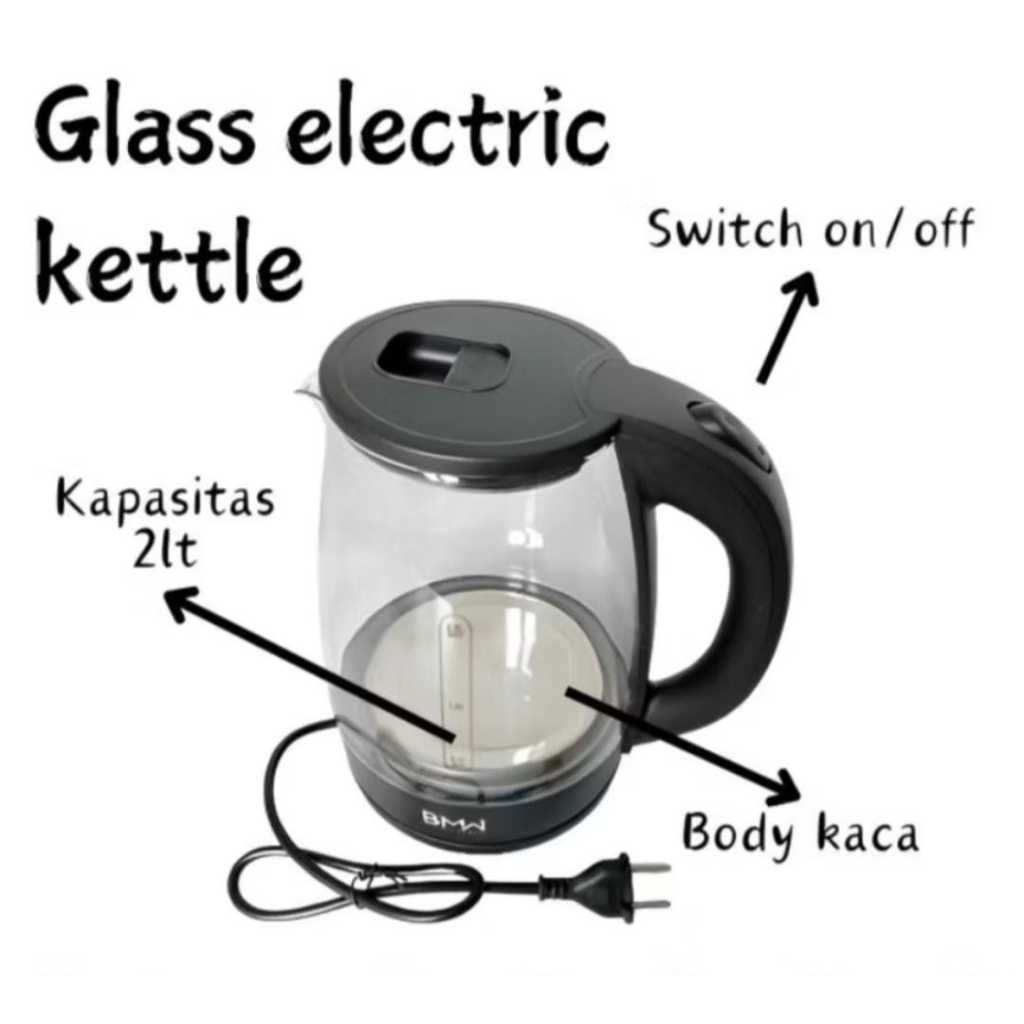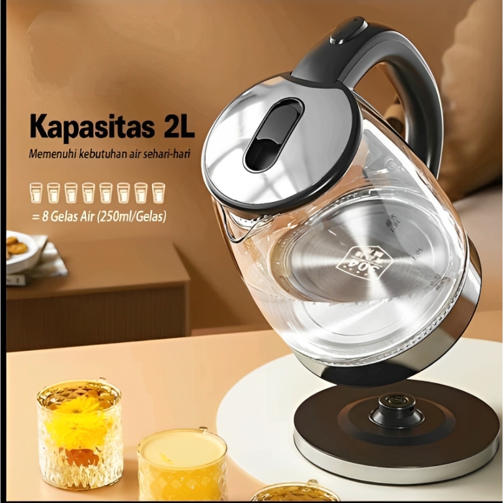Teko Elektrik Kettle 2L Kaca + Stainless Steel Glass Electric Kettle 2L teko pemanas air kaca 2L
