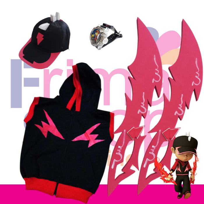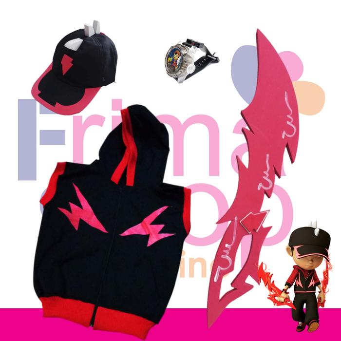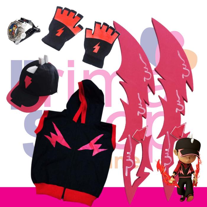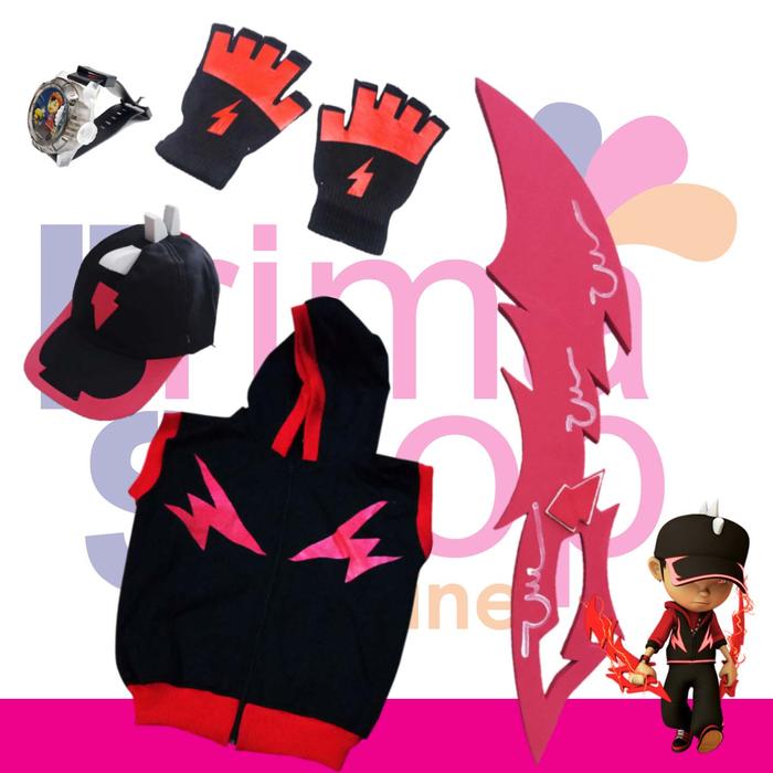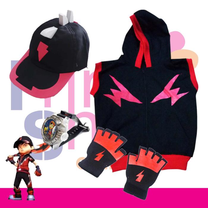 PAKET KOSTUM ANAK TOPI SARUNG TANGAN JAM TANGAN PROYEKTOR ROMPI PEDANG BOBOIBOY HALILINTAR THE MOVIE FASHION - TOPI+JAM TANGAN+SARUNG TANGAN+ROMPI, M
