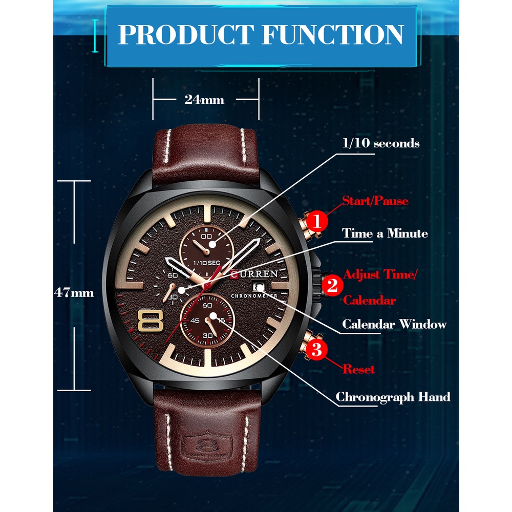 Jam Tangan Pria CURREN 8324 Chrono Aktif, Jam Tangan Kuarsa Tahan Air Olahraga Merek Mewah Atas,Jam Tangan Militer
