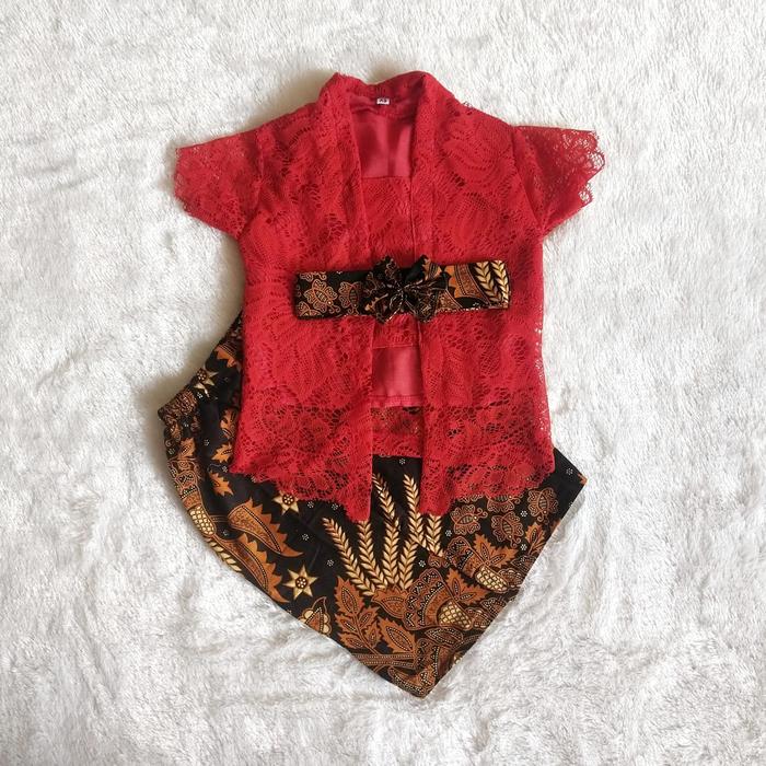 SETELAN KEBAYA BAYI DAN ANAK KUTUBARU LAPIS FURING ROK PANJANG KATUN PARSEL - MERAH, XS
