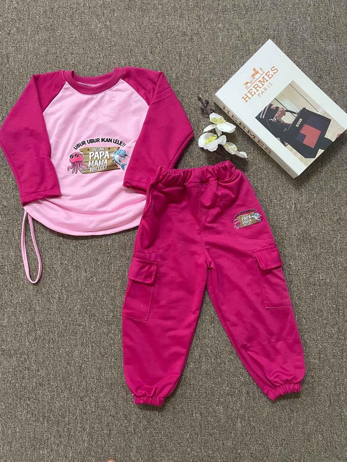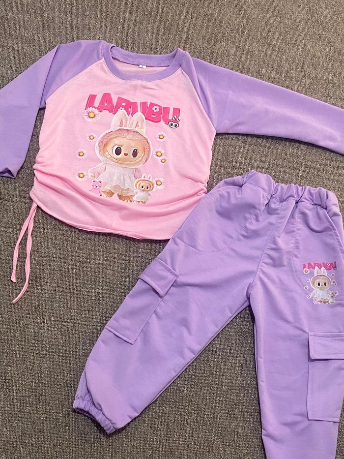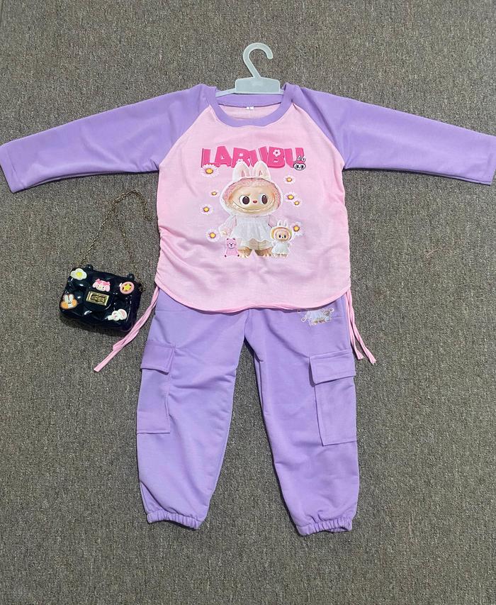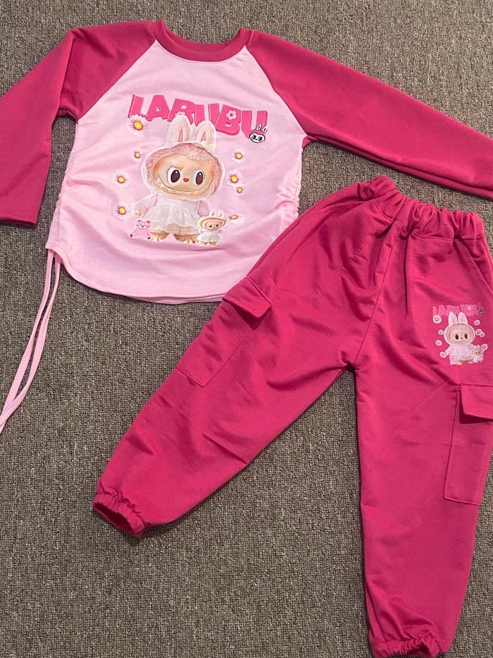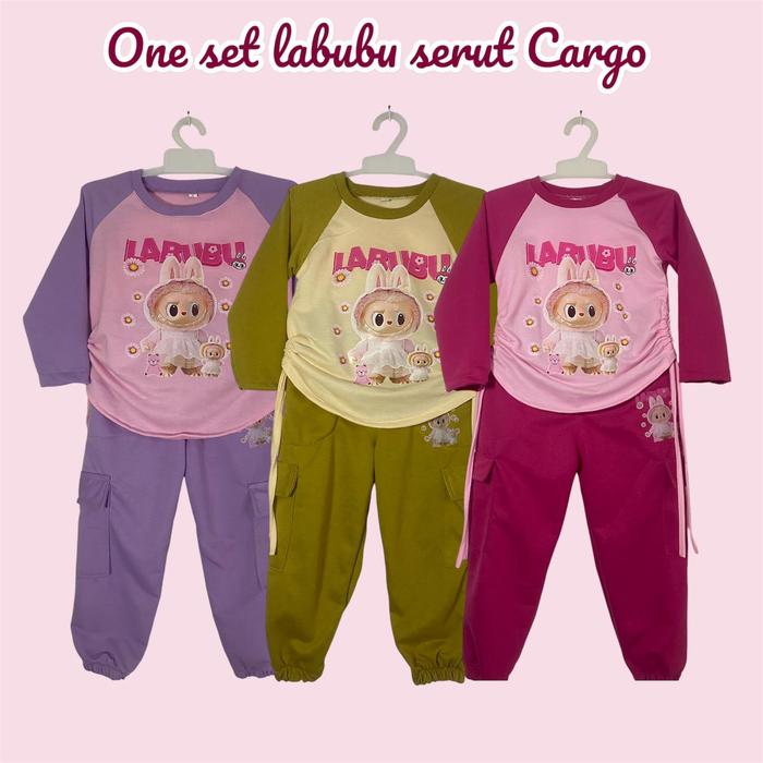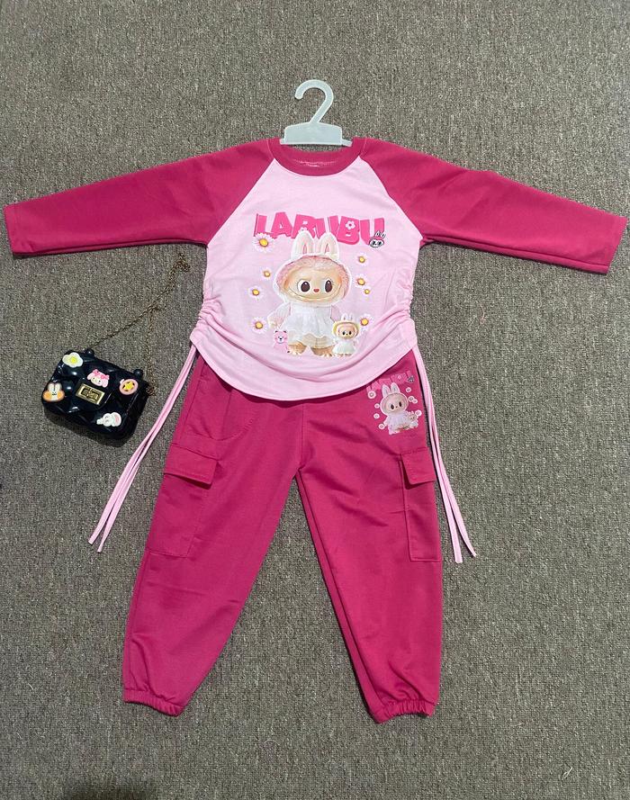 BAJU ANAK LABUBU SERUT CARGO 2-9THN/SETELAN ANAK PEREMPUAN/BAJU ANAK LABUBU /BAJU SERUT CARGO ANAK/BAJU ANAK CARGO/BAJU ANAK PEREMPUAN CEWEK BAJUAN AKCEWEK KATUN BAYI SET - PINK FUCHIA, L (3-4THN)