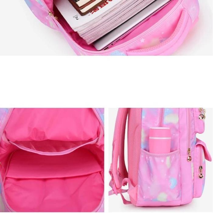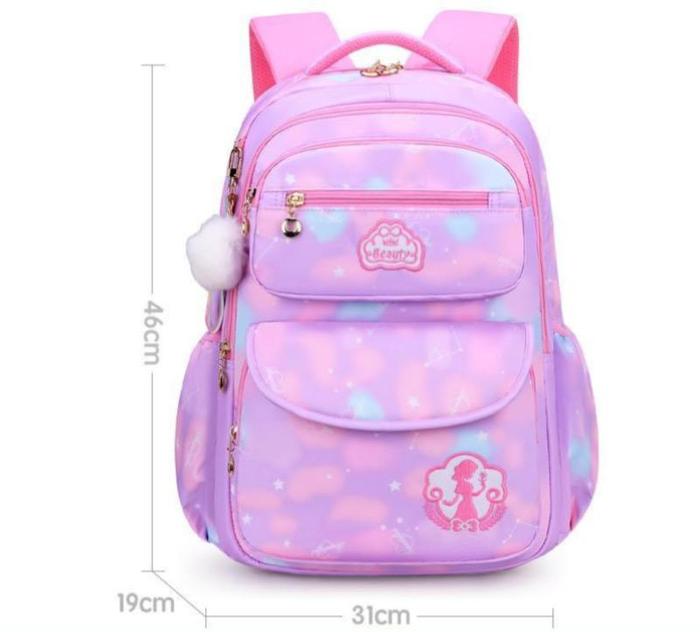 TAS SEKOLAH ANAK PEREMPUAN ANTI AIR TAS RANSEL ANAK TAS PUNGGUNG WANITA - UNGU, SEDANG