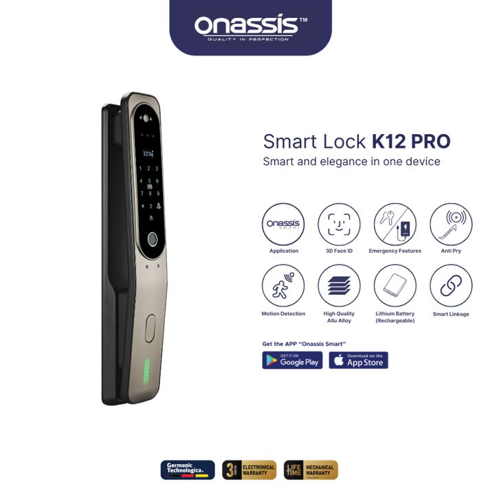 ONASSIS SMART LOCK K12 PRO WITH 3D FACE ID | | KUNCI PINTU PINTAR DENGAN BODY KOKOH