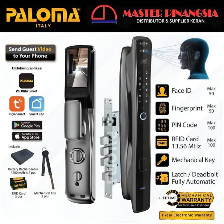 PALOMA Smart Lock Kunci Pintu Digital Lock Smart Door Lock Smart Home Kunci Pintar 3D Face ID Door Viewer